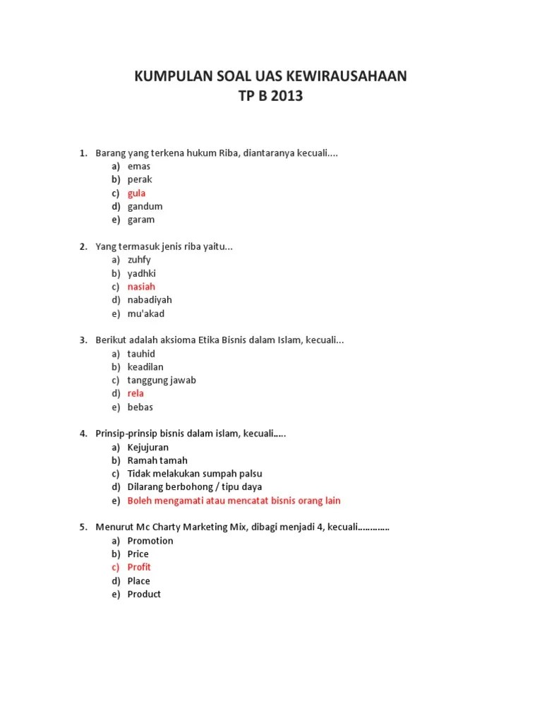 Kumpulan soal uts dan uas mata kuliah kewirausahaan.